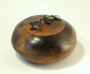 Boîte en céramique gravé fumée et polie. | |